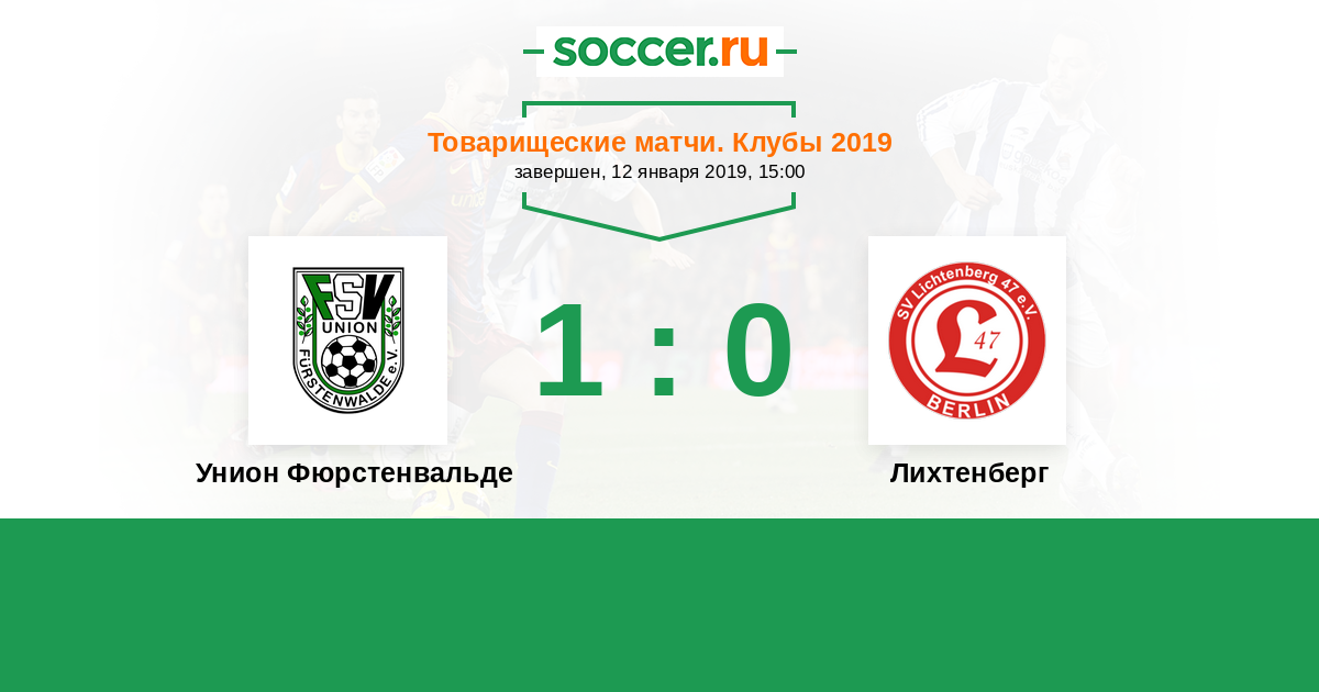 Товарищеские матчи. Клубы 07.07.2018 Унион Фюрстенвальде Логотип футбольный клуб Унион Фюрстенвальде 1:1 Логотип футбольный клуб Лихтенберг (Берлин) Лихтенберг