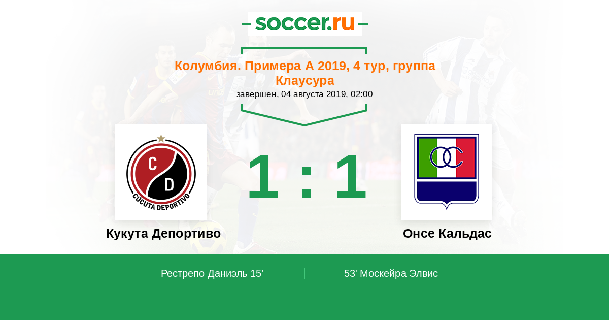 Колумбия. Примера А 15.10.2020 Онсе Кальдас Логотип футбольный клуб Онсе Кальдас (Манисалес) 1:1 Логотип футбольный клуб Кукута Депортиво Кукута Депортиво