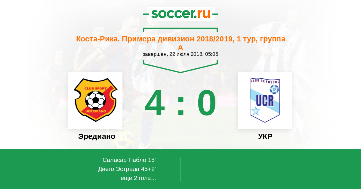 Коста-Рика. Примера дивизион 22.09.2013 УКР Логотип футбольный клуб УКР (Сан Хосе) 1:1 Логотип футбольный клуб Эредиано Эредиано