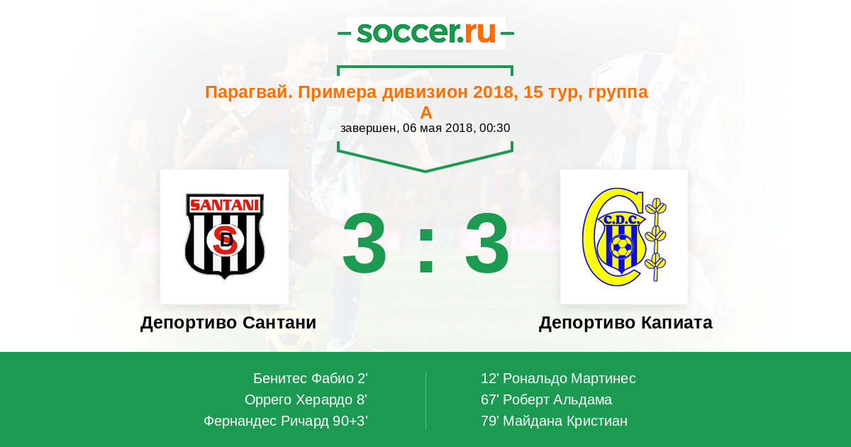 Парагвай. Примера дивизион 21.03.2015 Депортиво Сантани Логотип футбольный клуб Депортиво Сантани (Сан Эстанислао) 3:3 Логотип футбольный клуб Депортиво Капиата Депортиво Капиата