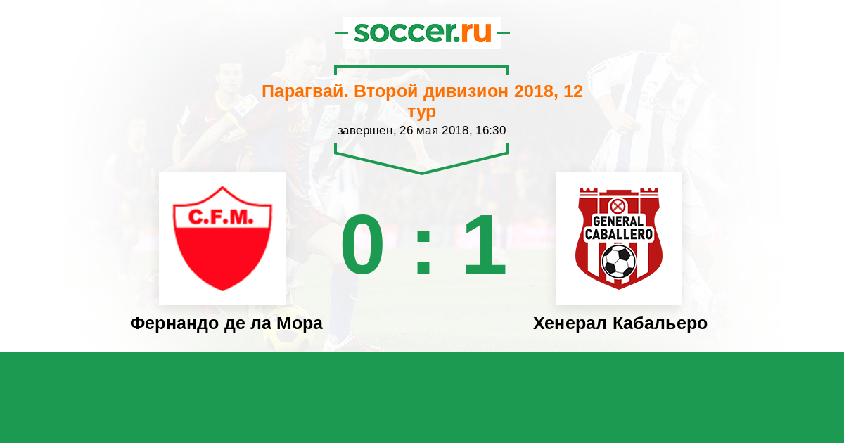 Парагвай. Второй дивизион 26.05.2019 Фернандо де ла Мора Логотип футбольный клуб Фернандо де ла Мора 1:1 Логотип футбольный клуб Хенерал Кабальеро (Доктор-Хуан-Леон-Майоркин) Хенерал Кабальеро