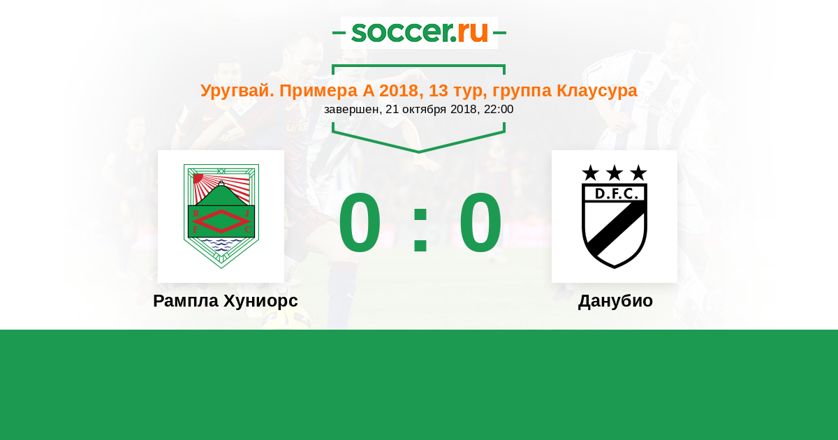 Уругвай. Примера A 21.04.2018 Данубио Логотип футбольный клуб Данубио (Монтевидео) 3:1 Логотип футбольный клуб Рампла Хуниорс (Монтевидео) Рампла Хуниорс