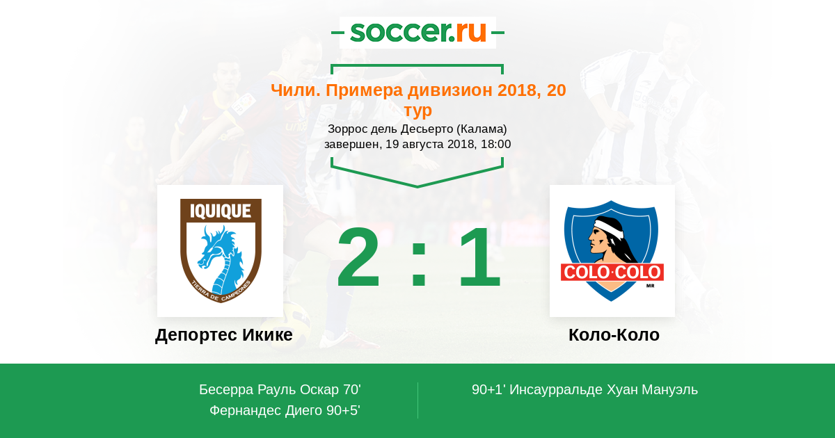 Чили. Примера дивизион 09.09.2017 Депортес Икике Логотип футбольный клуб Депортес Икике 1:1 Логотип футбольный клуб Коло-Коло (Сантьяго) Коло-Коло