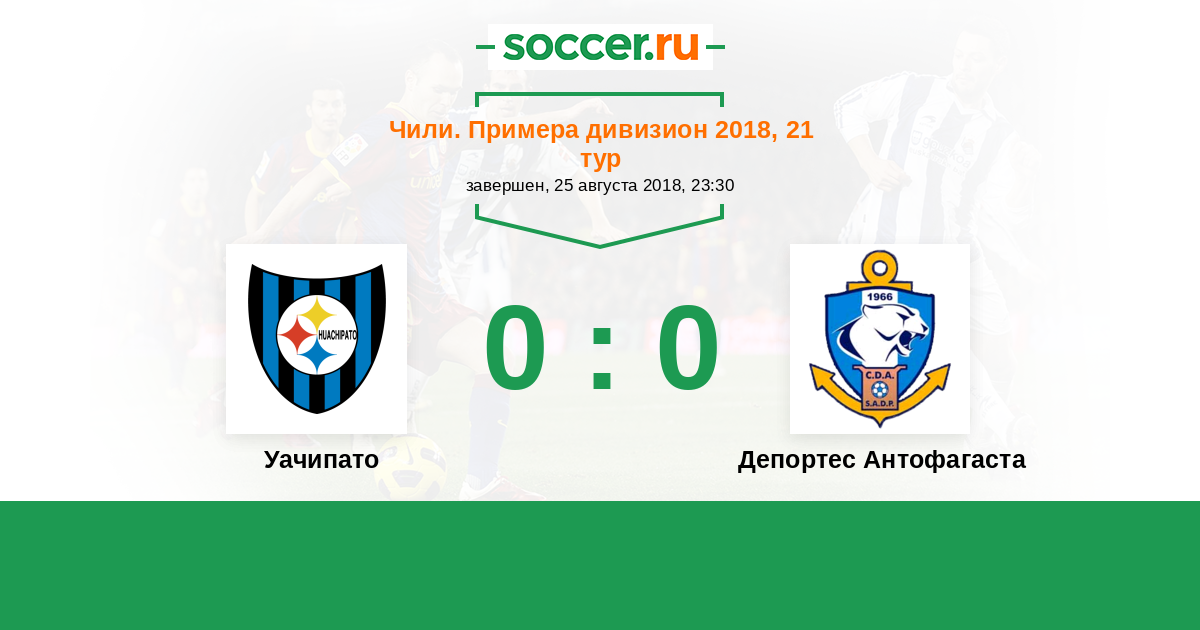 Чили. Примера дивизион 10.10.2020 Уачипато Логотип футбольный клуб Уачипато (Талькауано) 0:0 Логотип футбольный клуб Депортес Антофагаста Депортес Антофагаста