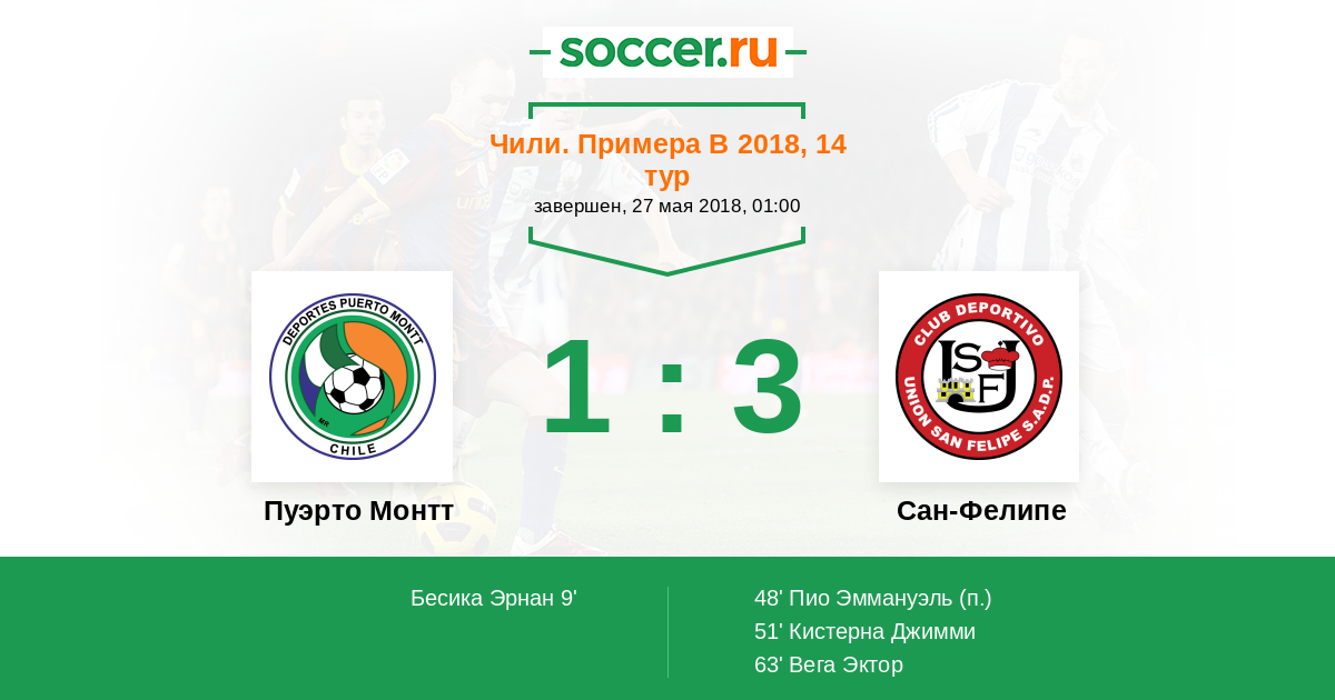 Чили. Примера В 15.03.2009 Сан-Фелипе Логотип футбольный клуб Сан-Фелипе (Сан Фелипе) 3:2 Логотип футбольный клуб Пуэрто Монтт Пуэрто Монтт