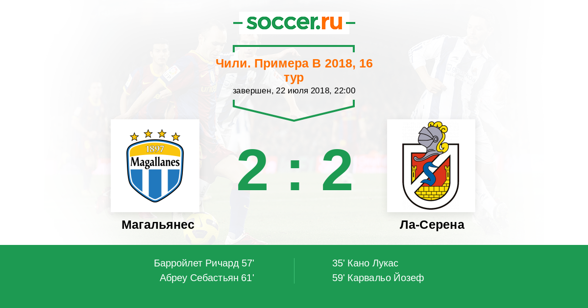 Чили. Примера В 20.08.2016 Ла-Серена Логотип футбольный клуб Ла-Серена 0:0 Логотип футбольный клуб Магальянес (Сантьяго) Магальянес