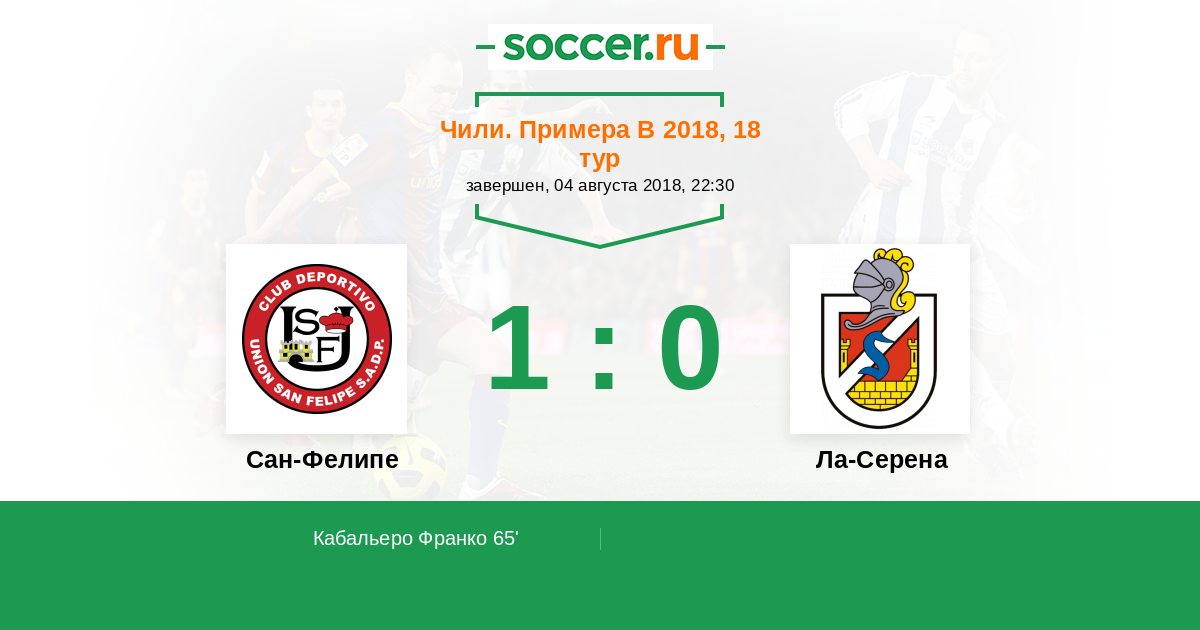 Чили. Примера В 18.08.2013 Сан-Фелипе Логотип футбольный клуб Сан-Фелипе (Сан Фелипе) 2:0 Логотип футбольный клуб Ла-Серена Ла-Серена