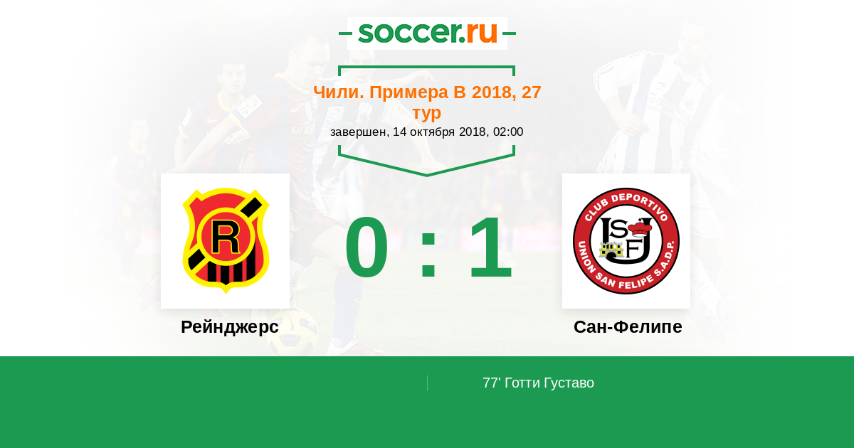 Чили. Примера В 04.10.2014 Рейнджерс Логотип футбольный клуб Рейнджерс (Талька) 2:4 Логотип футбольный клуб Сан-Фелипе (Сан Фелипе) Сан-Фелипе