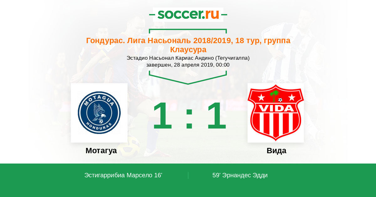 Гондурас. Лига Насьональ 28.02.2016 Мотагуа Логотип футбольный клуб Мотагуа (Тегусигальпа) 1:1 Логотип футбольный клуб Вида (Ла-Сейба) Вида