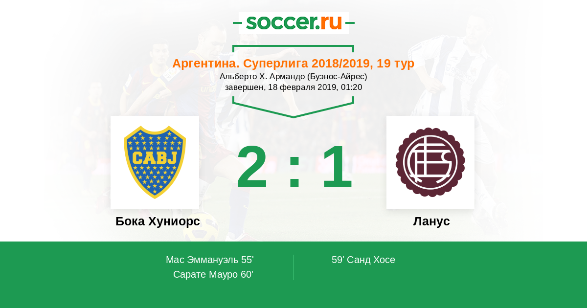 Аргентина. Суперлига 01.11.2019 Ланус Логотип футбольный клуб Ланус 2:1 Логотип футбольный клуб Бока Хуниорс (Буэнос-Айрес) Бока Хуниорс