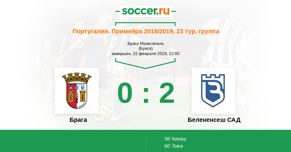 Португалия. Примейра 16.12.2017 Брага Логотип футбольный клуб Брага 4:0 Логотип футбольный клуб Белененсеш САД (Лиссабон) Белененсеш САД