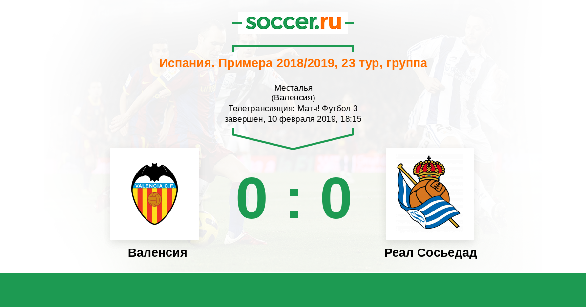 Испания. Примера 25.02.2018 Валенсия Логотип футбольный клуб Валенсия 2:1 Логотип футбольный клуб Реал Сосьедад (Сан-Себастьян) Реал Сосьедад