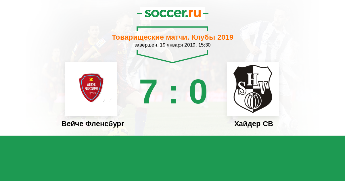 Товарищеские матчи. Клубы 19.01.2019 Вейче Фленсбург Логотип Вейче Фленсбург 7:0 Логотип футбольный клуб Хайдер СВ Хайдер СВ
