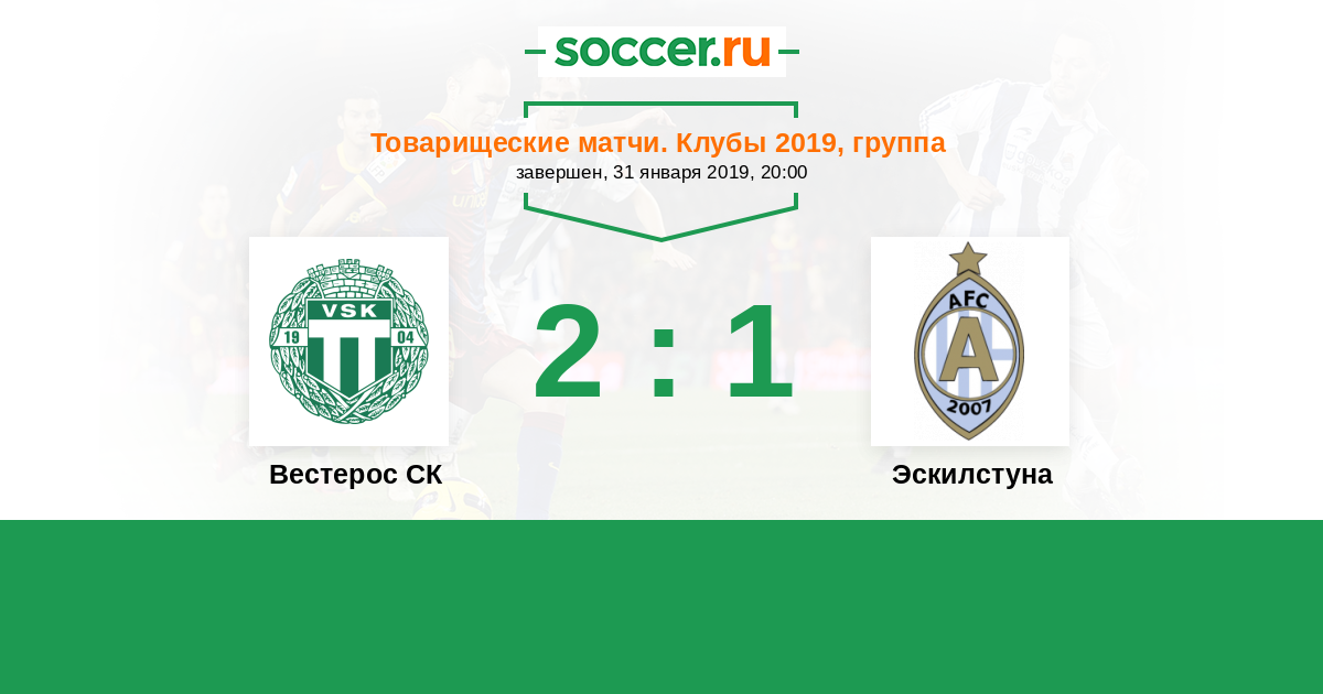Товарищеские матчи. Клубы 17.02.2018 Эскилстуна Логотип футбольный клуб Эскилстуна 2:0 Логотип футбольный клуб Вестерос СК Вестерос СК