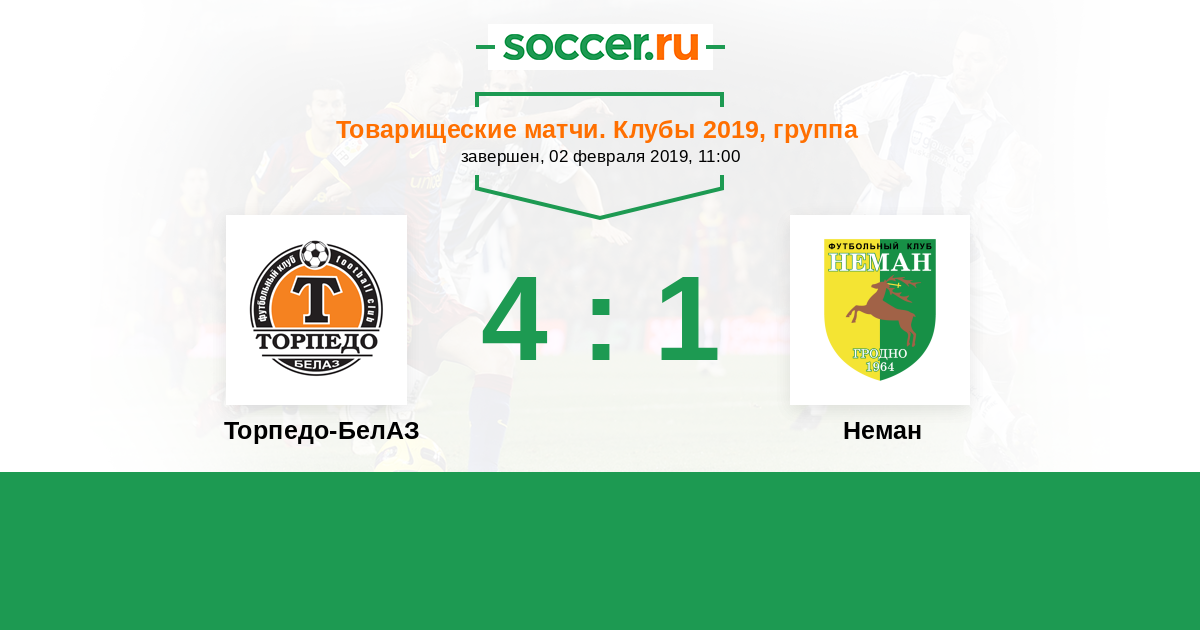 Товарищеские матчи. Клубы 03.02.2018 Торпедо-БелАЗ Логотип футбольный клуб Торпедо-БелАЗ (Жодино) 1:1 Логотип футбольный клуб Неман (Гродно) Неман