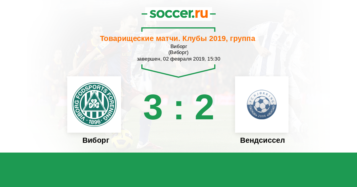 Товарищеские матчи. Клубы 25.02.2018 Виборг Логотип футбольный клуб Виборг 1:5 Логотип футбольный клуб Вендсиссел (Йерринг) Вендсиссел