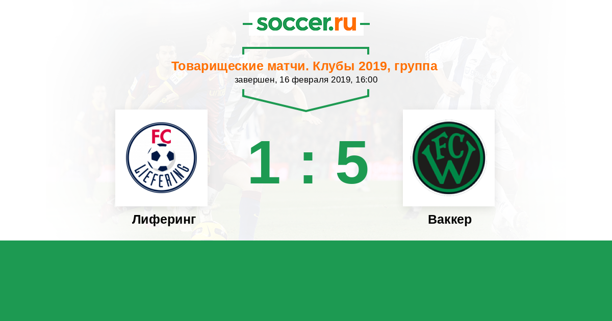 Товарищеские матчи. Клубы 05.02.2016 Лиферинг Логотип футбольный клуб Лиферинг (Зальцбург) 1:4 Логотип футбольный клуб Ваккер (Инсбрук) Ваккер