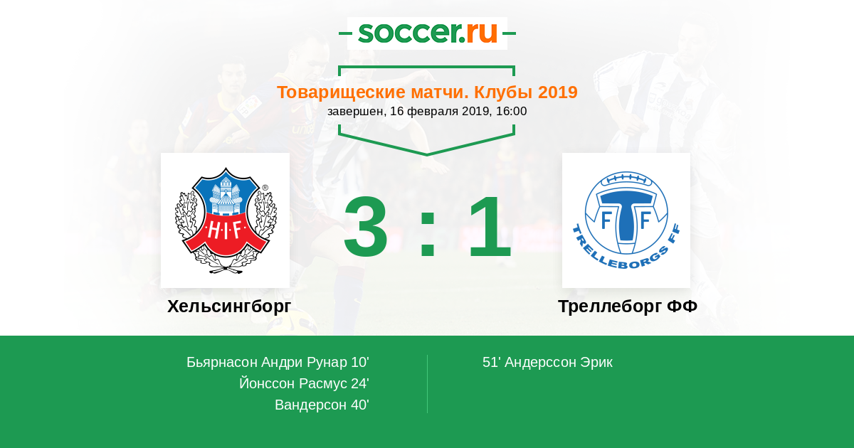 Швеция. Суперэттан 01.04.2017 Хельсингборг Логотип футбольный клуб Хельсингборг 1:0 Логотип футбольный клуб Треллеборг ФФ Треллеборг ФФ