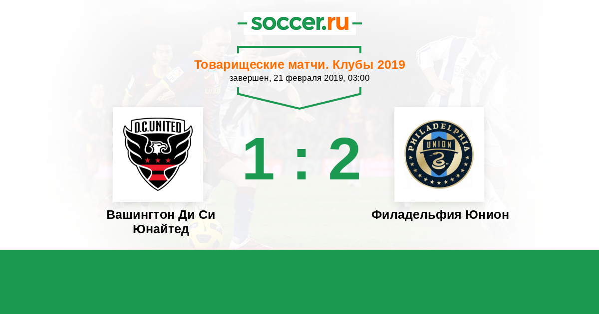 Товарищеские матчи. Клубы 31.03.2021 Филадельфия Юнион Логотип футбольный клуб Филадельфия Юнион 2:0 Логотип футбольный клуб Вашингтон Ди Си Юнайтед Вашингтон Ди Си Юнайтед