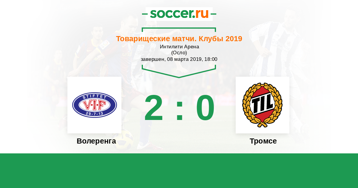 Товарищеские матчи. Клубы 15.02.2018 Волеренга Логотип футбольный клуб Волеренга (Осло) 0:3 Логотип футбольный клуб Тромсе Тромсе
