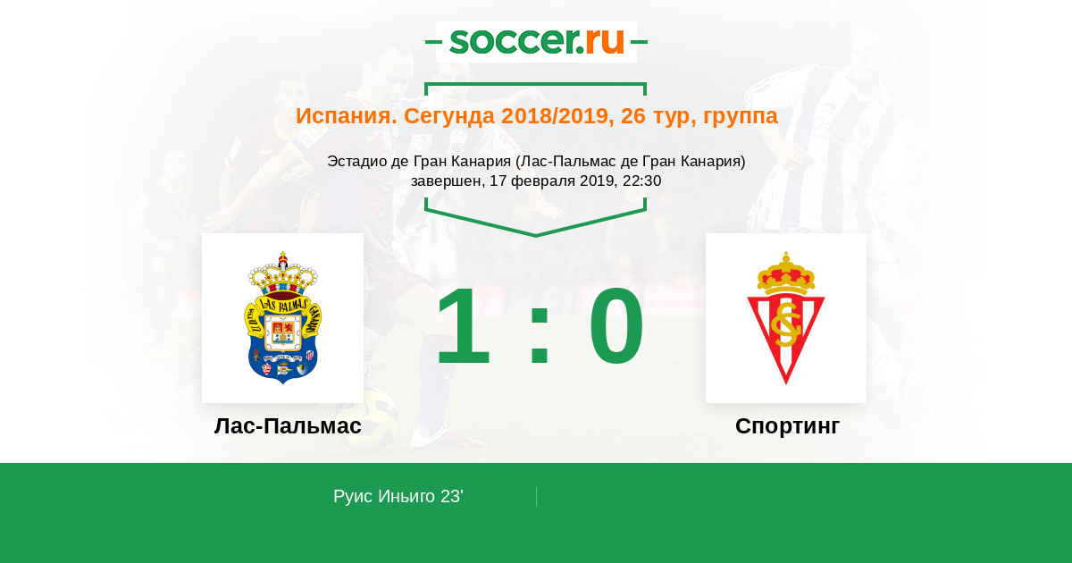 Испания. Сегунда 29.09.2018 Спортинг Логотип футбольный клуб Спортинг (Хихон) 1:0 Логотип футбольный клуб Лас-Пальмас Лас-Пальмас