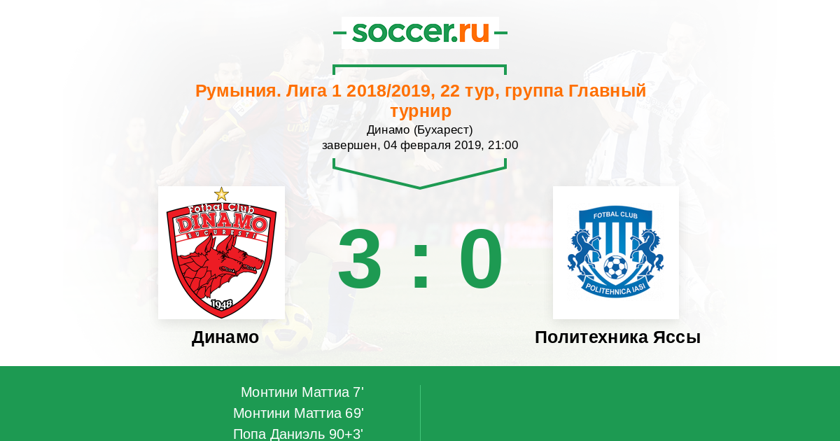 Румыния. Лига 1 17.09.2016 Динамо Логотип футбольный клуб Динамо (Бухарест) 3:1 Логотип футбольный клуб Политехника Яссы Политехника Яссы