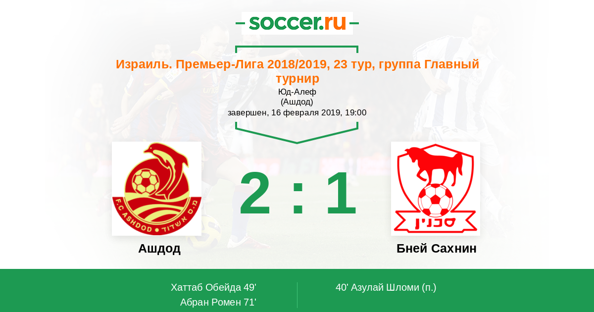 Израиль. Премьер-Лига 19.10.2013 Бней Сахнин Логотип Бней Сахнин 2:1 Логотип футбольный клуб Ашдод Ашдод