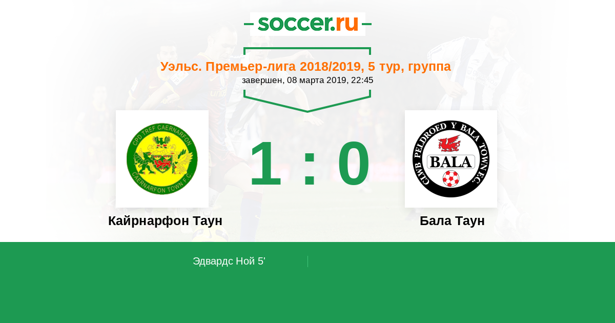 Уэльс. Премьер-Лига 21.03.2025 Кайрнарфон Таун Логотип футбольный клуб Кайрнарфон Таун 5:0 Логотип футбольный клуб Бала Таун Бала Таун