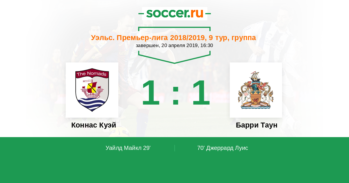Уэльс. Премьер-Лига 09.11.2024 Барри Таун Логотип футбольный клуб Барри Таун 3:2 Логотип футбольный клуб Коннас Куэй Коннас Куэй
