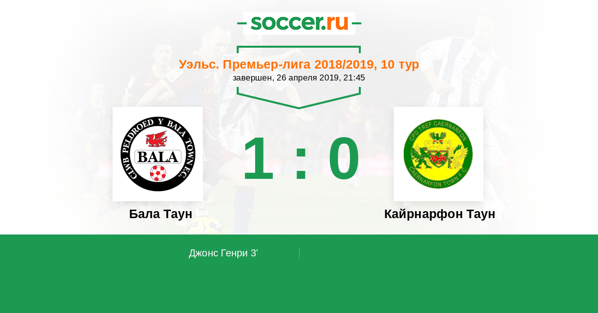 Уэльс. Премьер-Лига 08.03.2019 Кайрнарфон Таун Логотип футбольный клуб Кайрнарфон Таун 1:0 Логотип футбольный клуб Бала Таун Бала Таун
