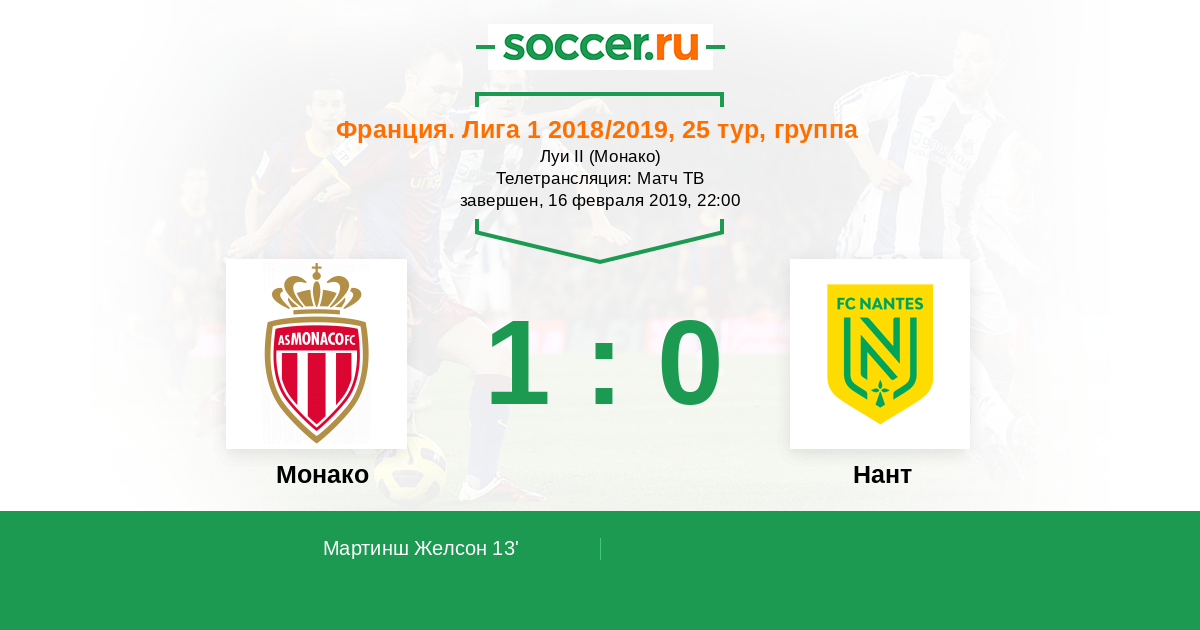 Франция. Лига 1 07.04.2018 Монако Логотип футбольный клуб Монако 2:1 Логотип футбольный клуб Нант Нант