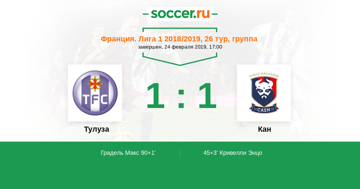 Франция. Лига 1 18.12.2018 Кан Логотип футбольный клуб Кан 2:1 Логотип футбольный клуб Тулуза Тулуза