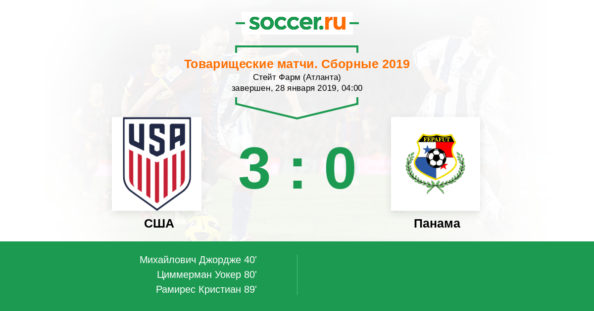 Отбор ЧМ. КОНКАКАФ 29.03.2017 Панама Логотип Панама 1:1 Логотип США США