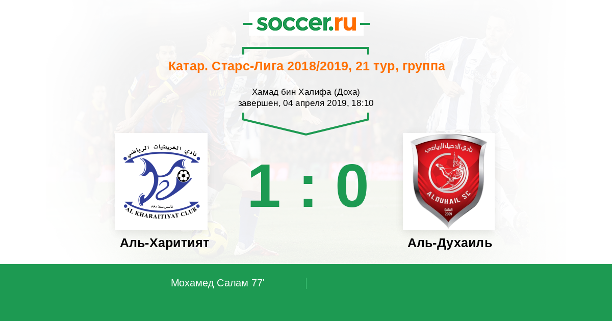 Катар. Старс Лига 25.10.2018 Аль-Духаиль Логотип футбольный клуб Аль-Духаиль (Доха) 4:1 Логотип футбольный клуб Аль-Харитият Аль-Харитият