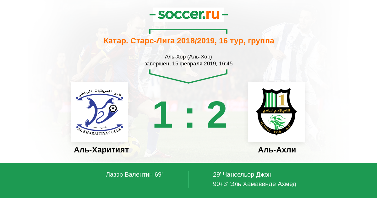 Катар. Старс Лига 12.02.2016 Аль-Харитият Логотип футбольный клуб Аль-Харитият 1:1 Логотип футбольный клуб Аль-Ахли (Доха) Аль-Ахли