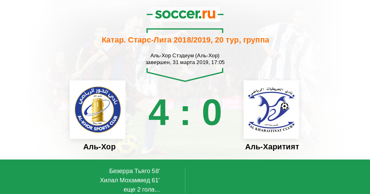 Катар. Старс Лига 10.04.2009 Аль-Хор Логотип футбольный клуб Аль-Хор 1:0 Логотип футбольный клуб Аль-Харитият Аль-Харитият