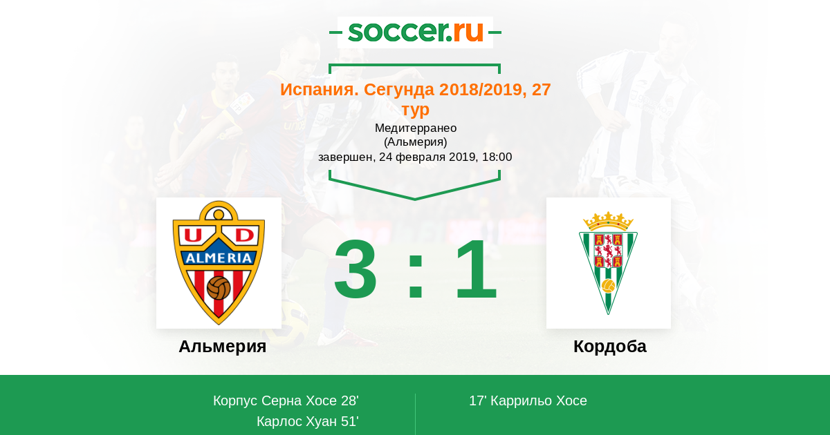 Испания. Сегунда 06.10.2018 Кордоба Логотип футбольный клуб Кордоба 1:0 Логотип футбольный клуб Альмерия Альмерия