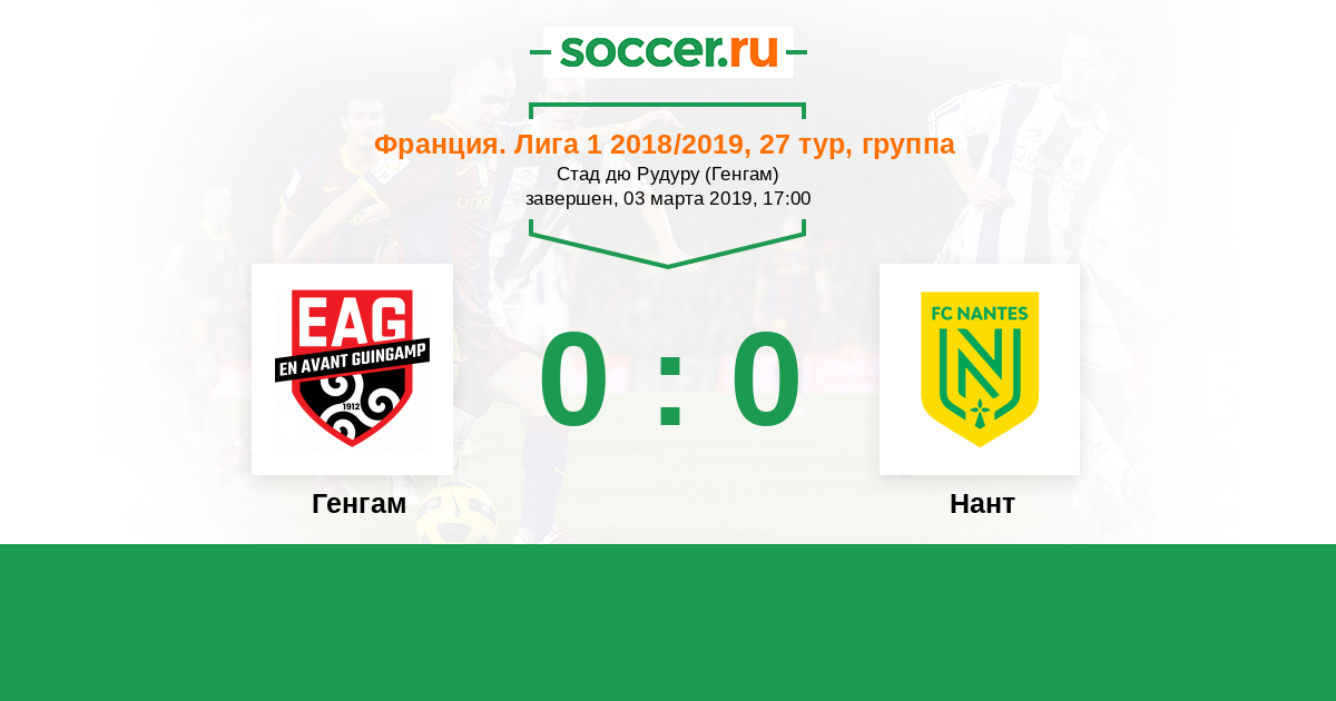 Франция. Лига 1 04.11.2018 Нант Логотип футбольный клуб Нант 5:0 Логотип футбольный клуб Генгам Генгам