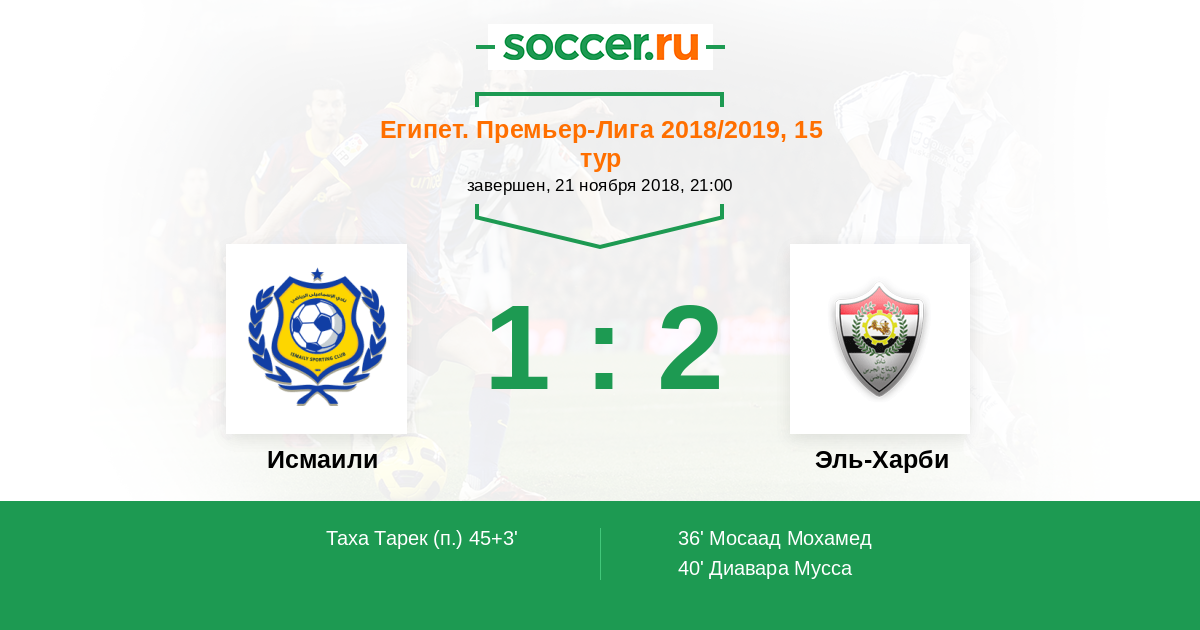 Египет. Премьер-Лига 21.10.2015 Исмаили Логотип футбольный клуб Исмаили (Исмаилия) 2:0 Логотип футбольный клуб Эль-Харби (Каир) Эль-Харби