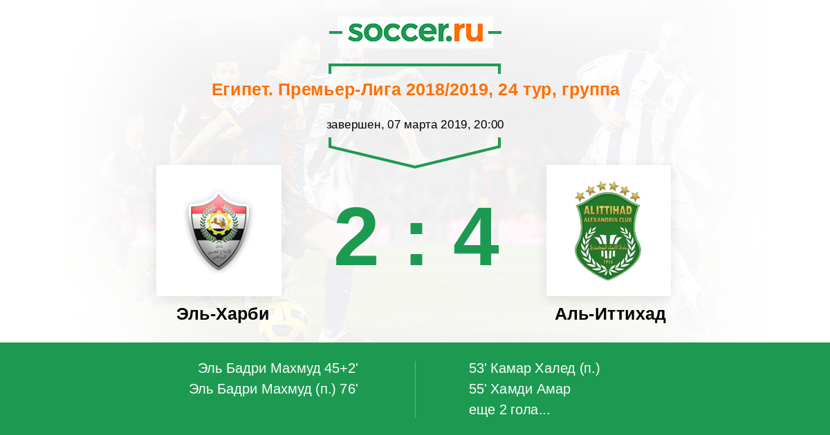 Египет. Премьер-Лига 01.04.2014 Эль-Харби Логотип футбольный клуб Эль-Харби (Каир) 0:0 Логотип футбольный клуб Аль-Иттихад (Александрия) Аль-Иттихад