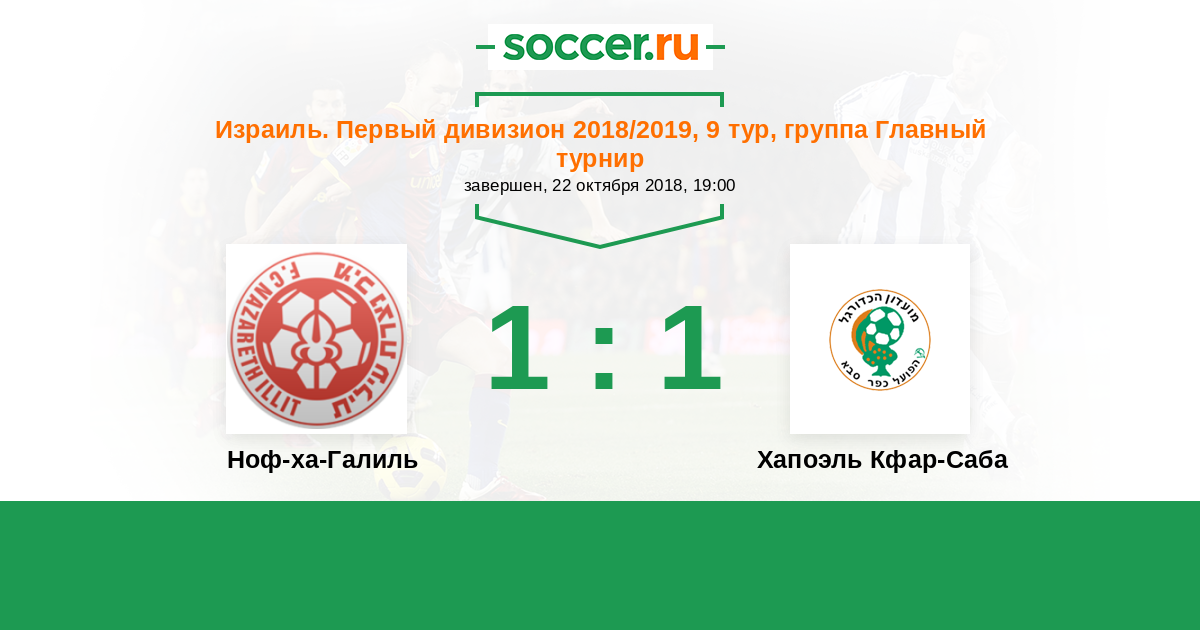 Израиль. Первый дивизион 18.02.2019 Хапоэль Кфар-Саба Логотип футбольный клуб Хапоэль Кфар-Саба 0:0 Логотип футбольный клуб Ноф-ха-Галиль (Назарет Иллит) Ноф-ха-Галиль
