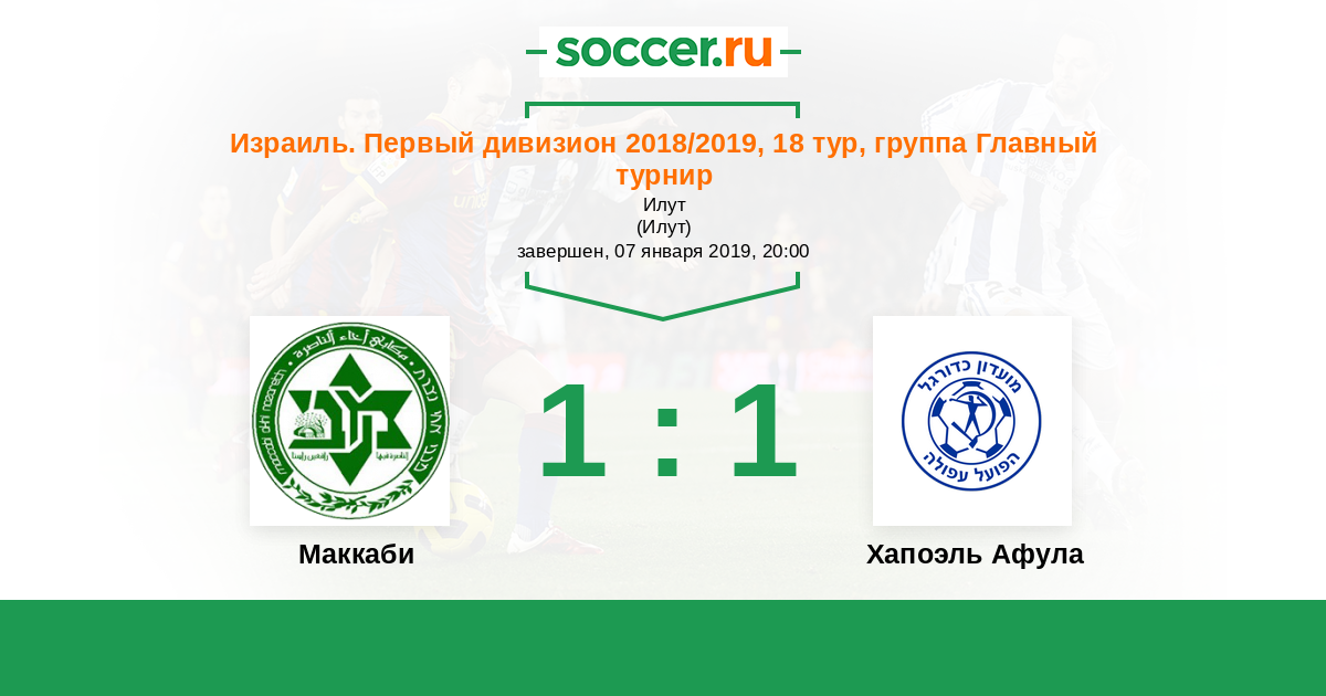 Израиль. Первый дивизион 12.01.2018 Маккаби Логотип футбольный клуб Маккаби (Ахи Назарет) 0:1 Логотип футбольный клуб Хапоэль Афула Хапоэль Афула