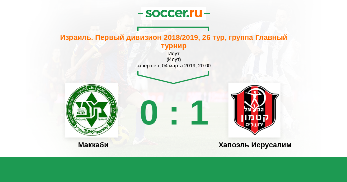 Израиль. Первый дивизион 31.03.2017 Хапоэль Иерусалим Логотип футбольный клуб Хапоэль Иерусалим 2:0 Логотип футбольный клуб Маккаби (Ахи Назарет) Маккаби