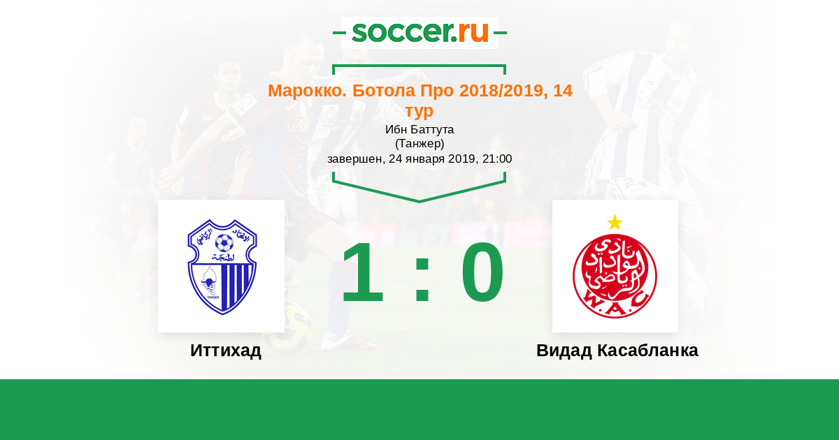 Марокко. Ботола Про 18.12.2017 Видад Касабланка Логотип футбольный клуб Видад Касабланка 0:1 Логотип футбольный клуб ИР Анже (Танжер) ИР Анже