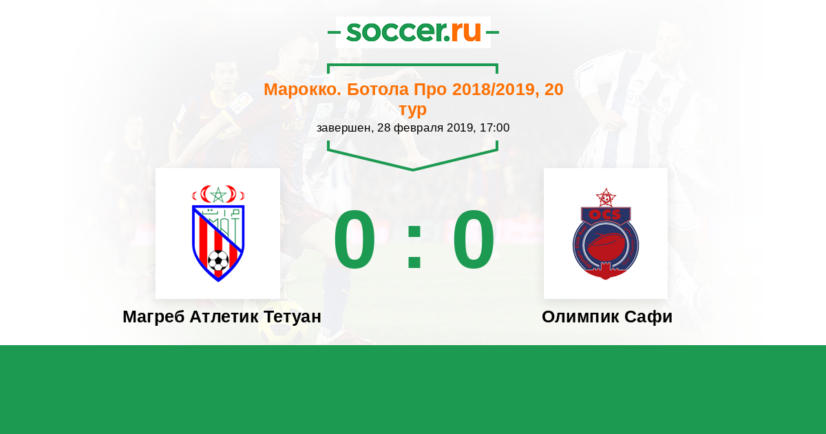 Марокко. Ботола Про 11.02.2018 Олимпик Сафи Логотип футбольный клуб Олимпик Сафи 0:0 Логотип футбольный клуб Магреб Атлетик Тетуан Магреб Атлетик Тетуан