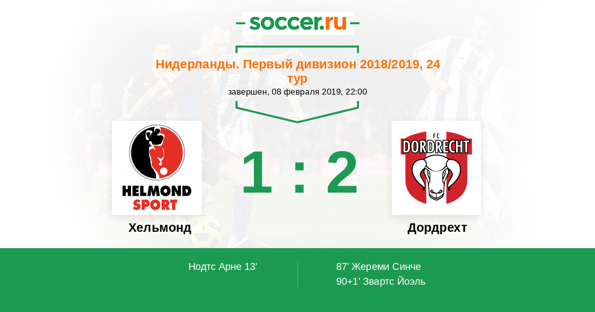Нидерланды. Первый дивизион 09.02.2018 Дордрехт Логотип футбольный клуб Дордрехт 3:2 Логотип футбольный клуб Хельмонд Хельмонд
