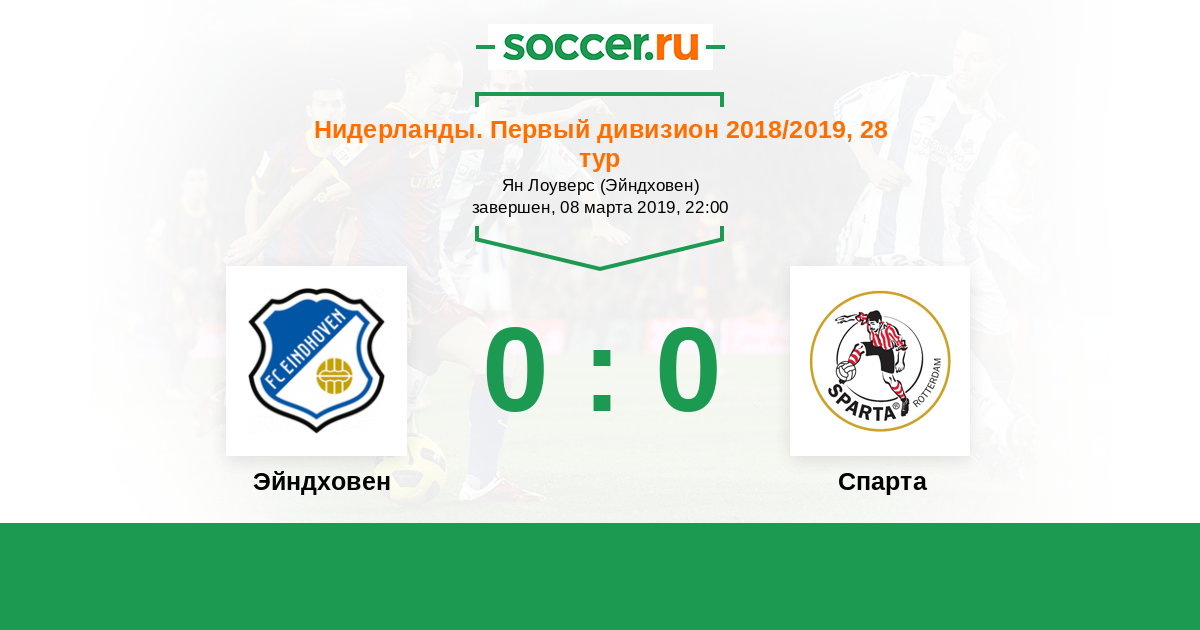 Нидерланды. Первый дивизион 27.02.2012 Эйндховен Логотип футбольный клуб Эйндховен 0:2 Логотип футбольный клуб Спарта (Роттердам) Спарта