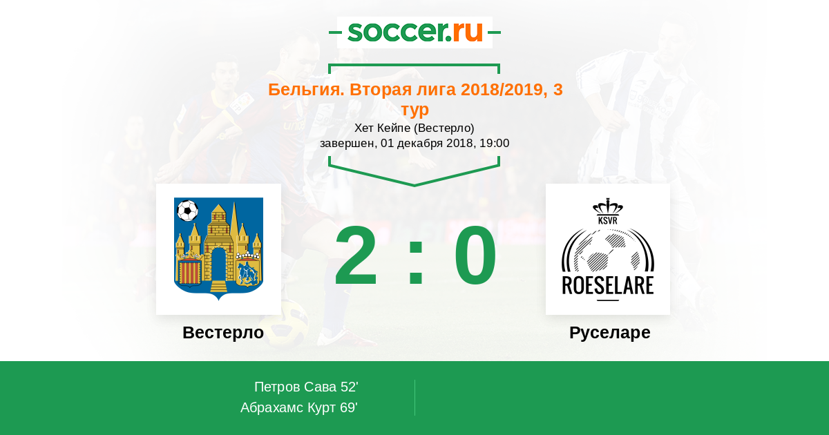 Бельгия. 1B Про Лига 17.11.2012 Руселаре Логотип футбольный клуб Руселаре 1:1 Логотип футбольный клуб Вестерло Вестерло