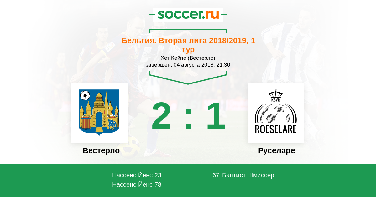 Бельгия. 1B Про Лига 06.04.2013 Вестерло Логотип футбольный клуб Вестерло 1:1 Логотип футбольный клуб Руселаре Руселаре