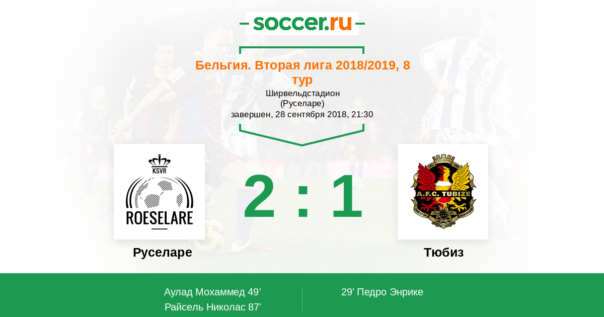 Бельгия. 1B Про Лига 17.11.2018 Тюбиз Логотип футбольный клуб Тюбиз 3:2 Логотип футбольный клуб Руселаре Руселаре
